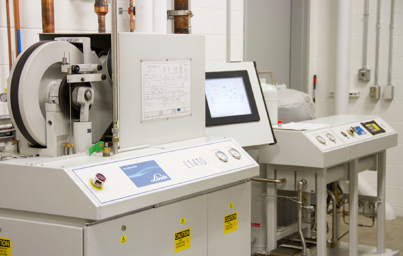 Helium, a critical component of cutting edge research at Pitt, is a nonrenewable resource that is usually used once and then expelled into the atmosphere, but not at Pitt. The Dietrich School of Arts & Sciences manages a Helium Recovery Program that re-liquefies Helium for reuse in University research experiments.